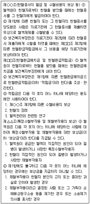 헌혈증서를 제출함으로써 무상으로 혈액제제를 수혈받을 수 있는 사람은 헌혈자에 한한다.