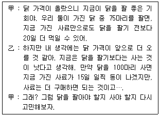 다음 글을 근거로 판단할 때, 甲과 乙이 가지고 있는 닭의 마릿수는?