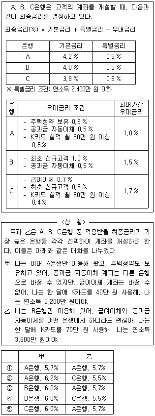 다음 글과 <상황>을 근거로 판단할 때, 甲과 乙이 각각 선택할 은행과 그 은행에서 적용받을 최종금리를 옳게 짝지은 것은?
