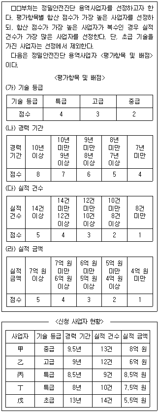 다음 글과 <신청 사업자 현황>을 근거로 판단할 때, 용역사업자로 선정될 사업자는?
