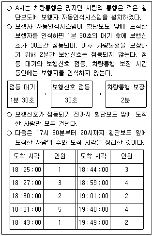 다음 글을 근거로 판단할 때, 18시에서 20시 사이에 보행신호가 점등된 횟수는?