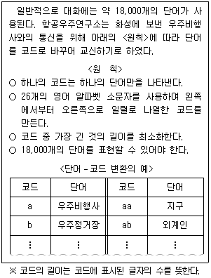 다음 글을 근거로 판단할 때, 하나의 단어를 표현하는 가장 긴 코드의 길이는?