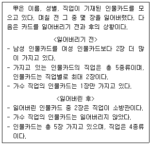 다음 글을 근거로 판단할 때, 甲이 잃어버린 인물카드의 수는?