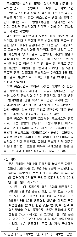 2022년 1월 31일 丁에 대해 공소가 제기된다면 적법한 공소제기이다.