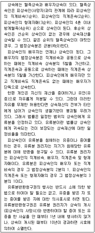 피상속인에게 3촌인 방계혈족만 있는 경우, 그 방계혈족은 상속인이 될 수 있지만 유류분 권리자는 될 수 없다.
