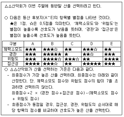 다음 글을 근거로 판단할 때, △△산악회가 선택할 산은?