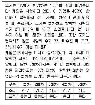 다음 글을 근거로 판단할 때, 게임의 2회차와 5회차에서 탈락한 사람 수의 합은?