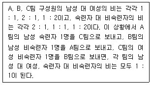 다음 글을 근거로 판단할 때, A, B, C팀 구성원의 총수는?