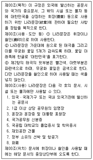 대한민국 정부가 주한 영국대사관에 발신하는 공문서에 나라문장을 사용하는 경우, 나라문장은 해당 문서의 중앙상단부에 위치한다.