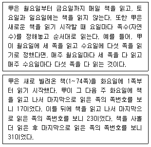 다음 글과 <상황>을 근거로 판단할 때, 甲이 새로 빌려온 책의 마지막 쪽을 읽는 요일은?
