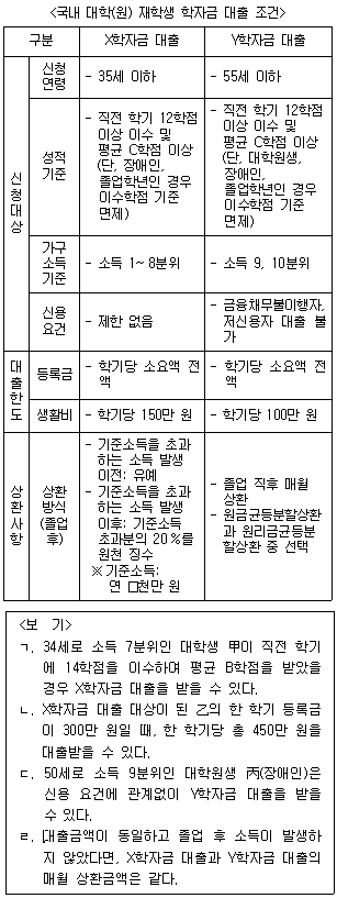 다음 <국내 대학(원) 재학생 학자금 대출 조건>을 근거로 판단할 때, <보기>에서 옳은 것만을 모두 고르면? (단, 甲~丙은 국내 대학(원)의 재학생이다)
