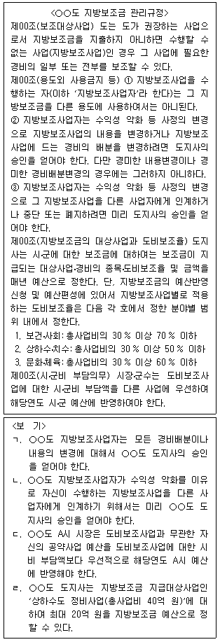 다음 <○○도 지방보조금 관리규정>을 근거로 판단할 때, <보기>에서 옳은 것만을 모두 고르면?