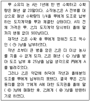 윗글을 근거로 판단할 때, <상황>의 ㉠~㉣에 들어갈 수의 합은? (단, 쌀 1말의 가치는 5냥이며, 주어진 조건 외에는 고려하지 않는다)
