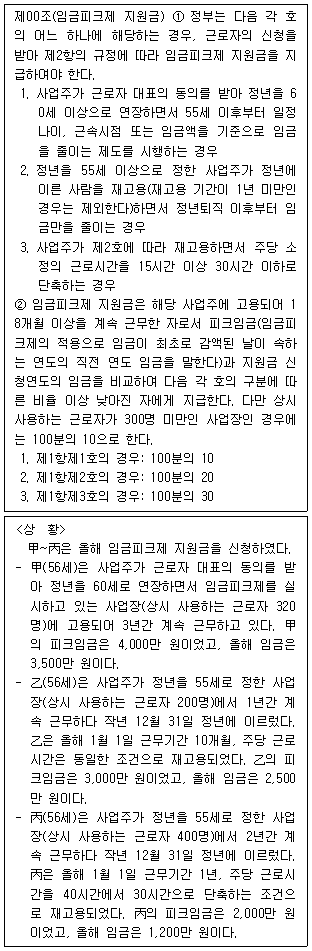 다음 글과 <상황>을 근거로 판단할 때, 甲~丙 중 임금피크제 지원금을 받을 수 있는 사람만을 모두 고르면?