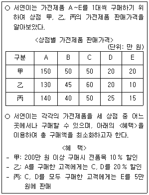 다음 글을 근거로 판단할 때, 서연이가 구매할 가전제품과 구매할 상점을 옳게 연결한 것은?