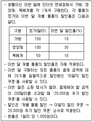 다음 글을 근거로 판단할 때, 창렬이가 결제할 최소 금액은?