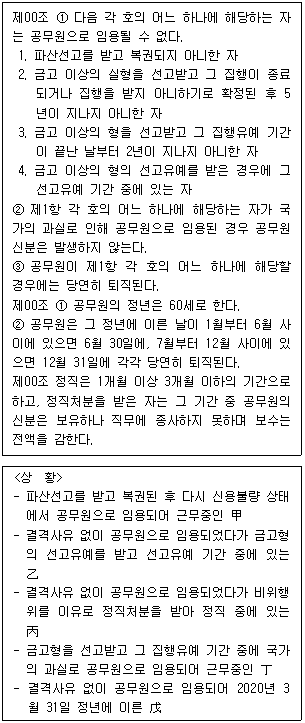 다음 글과 <상황>을 근거로 판단할 때, 2020년 5월 16일 현재 공무원 신분인 사람만을 모두 고르면?