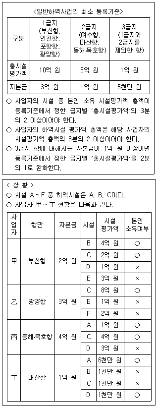 다음 글과 <상황>을 근거로 판단할 때, 일반하역사업 등록이 가능한 사업자만을 모두 고르면?