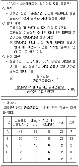 다음 글과 <상황>을 근거로 판단할 때, 청년미래공제에 참여 가능한 기업을 모두 고르면?