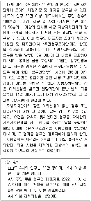 A시에서 주민이 조례 개정을 청구하기 위해서는 최소 6,000명 이상의 연서가 필요하다.