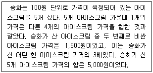 승화가 산 가장 비싼 아이스크림의 가격은 승화가 산 가장 싼 아이스크림 가격의 20배를 넘었을 수도 있다.