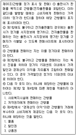 간행물을 판매하는 자는 저작권자에게 간행물을 정가의 20퍼센트 할인한 가격으로 판매할 수 없다.