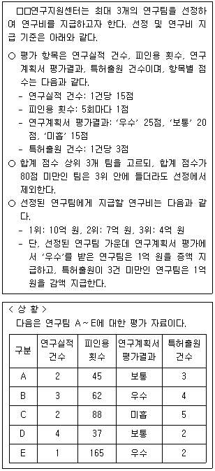 다음 글과 <상황>을 근거로 판단할 때, □□연구지원센터가 지급할 연구비 총액은?