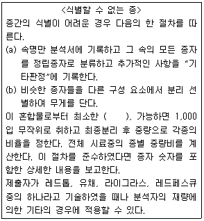 순도분석 시 선별에서 식별할 수 없는 종에 대한 내용이다. ( )에 알맞은 내용은?
