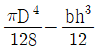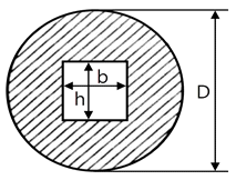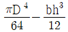 지름이 D인 원형축의 중심에 높이 h, 폭 6인 직사각형 단면인 구멍이 축의 도심에 뚫린 경우, 단면 도심축에 대한 단면 2차 모멘트를 구하는 식은?