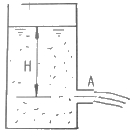 그림과 같은 원통 용기의 하부 구멍A의 단면적이 0.05m2이고 이를 통해서 물이 유출할 때 유량은 약 m3/s 인가? (단, 유량계수는 C=0.6, 높이는 H=2m 로 일정하다.)