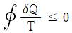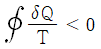 계가 비가역 사이클을 이룰 때 클라우지우스(Clausius)의 적분을 옳게 나타낸 것은? (단, T는 온도, Q는 열량이다.)