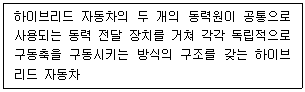 도로 차량-하이브리드 자동차 용어(KS R 0121)의 동력 전달 구조에 따른 분류에서 다음이 설명하는 것은?