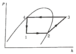 그림과 같이 작동하는 냉동사이클(압력(P) - 엔탈피(h) 선도)에서 h1 = h4 = 98 kJ/kg, h2 = 246kJ/kg, h3 = 298kJ/kg 일 때 이 냉동사이클의 성능계수(COP)는 약 얼마인가?