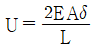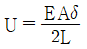 균일 단면 봉재에 작용하는 수직응력에 대한 탄성에너지를 구하는 식으로 옳은 것은? (단, 탄성에너지 U, 인장하중 P, 봉재길이 L, 세로탄성계수 E, 변형량 δ, 단면적은 A 이다.)