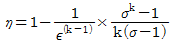 내연기관의 열역학적 정압 사이클에서 이론 열효율 η을 구하는 식으로 옳은 것은? (단, ε:압축비, k:비열비, σ:단절비이다.)
