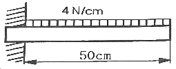 길이가 50cm인 외팔보에 그림과 같이 ω=4N/cm인 균일분포하중이 작용할 때 최대 굽힘 모멘트의 값은 몇 Nㆍcm인가?