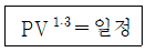 가역 과정으로 실린더 안의 공기를 50kPa, 10℃ 상태에서 300kPa까지 압력(P)과 체적(V)의 관계가 다음과 같은 과정으로 압축할 때 단위 질량당 방출되는 열량은 약 몇 kJ/kg인가? (단, 기체 상수는 0.287kJ/(kgㆍK)이고, 정적비열은 0.7kJ/(kgㆍK)이다.)
