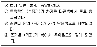 다음 4가지 경우에서 ( ) 안의 물질이 보유한 엔트로피가 증가한 경우는?