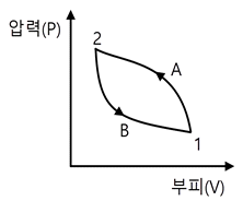 상태 1에서 경로 A를 따라 상태 2로 변화하고 경로 B를 따라 다시 상태 1로 돌아오는 가역사이클이 있다. 아래의 사이클에 대한 설명으로 틀린 것은?