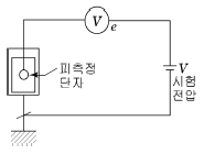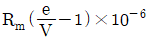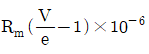 피측정단자에 그림과 같이 결선하여 전압계로 e(V)라는 전압을 얻었을 때 피측정단자의 절연저항은 몇 M Ω인가? (단, Rm : 전압계 내부저항(Ω), V : 시험전압(V)이다.)