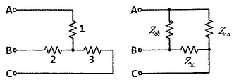그림과 같은 Y결선 회로와 등가인 △결선 회로의 Zab, Zbc, Zca 값은?