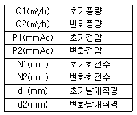 송풍기의 법칙 중 틀린 것은? (단, 각각의 값은 아래 표와 갔다.)