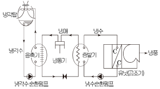 다음 그림에서 나타낸 배관시스템 계통도는 냉방설비의 어떤 열원방식을 나타낸 것인가?
