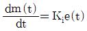 는 어떤 조절기의 출력(조작신호) m(t)과 동작신호 e(t) 사이의 관계를 나타낸 것이다. 이 조절기의 제어동작은? (단, Ki는 상수이다.)