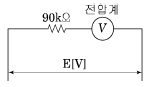최대 눈금 1000V, 내부저항 10kΩ인 전압계를 가지고 그림과 같이 전압을 측정하였다. 전압계의 지시가 200V일 때 전압 E는 몇 V인가?