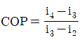 냉동장치의 p - i (압력-엔탈피) 선도에서 성적계수를 구하는 식으로 옳은 것은?