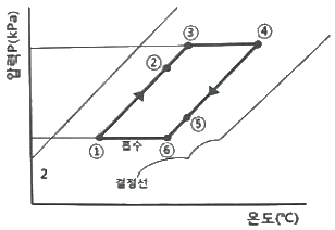 다음 그림은 단효용 흡수식 냉동기에서 일어나는 과정을 나타낸 것이다. 각 과정에 대한 설명으로 틀린 것은?