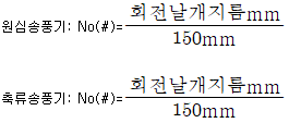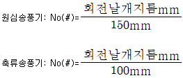 송풍기 번호에 의한 송풍기 크기를 나타내는 식으로 옳은 것은?