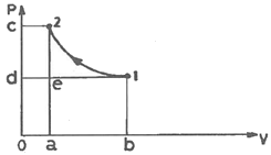 P-V(압력-체적)선도에서 l에서 2까지 단열 압축하였을 때 압축일량(절대일)은 어느 면적으로 표현되는가?