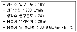 다음 조건으로 운전되고 있는 수냉 응축기가 있다. 냉매와 냉각수와의 평균 온도차는?